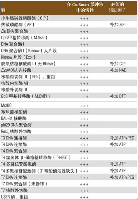 DNA 修飾酶在 CutSmart 反應(yīng)緩沖液中的活性