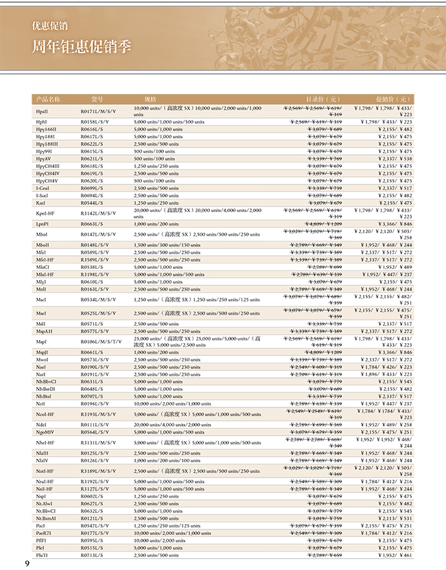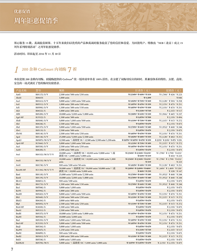 1. 200 余種 CutSmart 內切酶 7 折