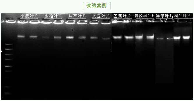 用灣區(qū)試劑盒按說明書對(duì)50mg植物樣本樣本進(jìn)行DNA純化,條帶單一,清晰。