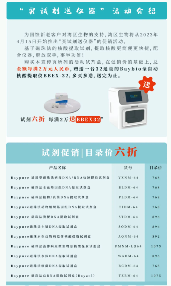 2023年,北京百靈克生物成為廣州灣區(qū)生物在北京地區(qū)的一級(jí)代理商,負(fù)責(zé)灣區(qū)生物的核酸提取儀以及配套試劑的銷售推廣工作,灣區(qū)生物針對(duì)病毒、血液、細(xì)胞、細(xì)菌、土壤、糞便、動(dòng)物組織、植物組織、微生物等各種類型的樣本,可以提供全面、完整、優(yōu)質(zhì)的自動(dòng)化解決方案。